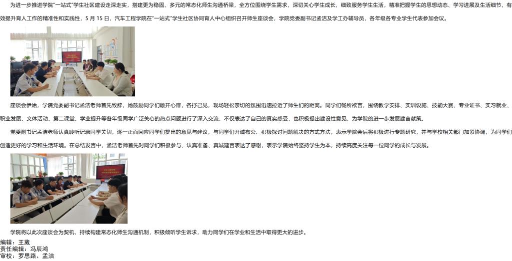 “一站式”学生社区 | 汽车工程学院组织召开师生座谈会