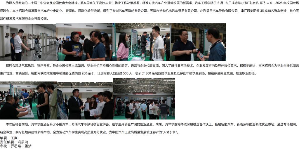 汽车学院举办2025年校园专场招聘会 助力学子驶入职业快车道