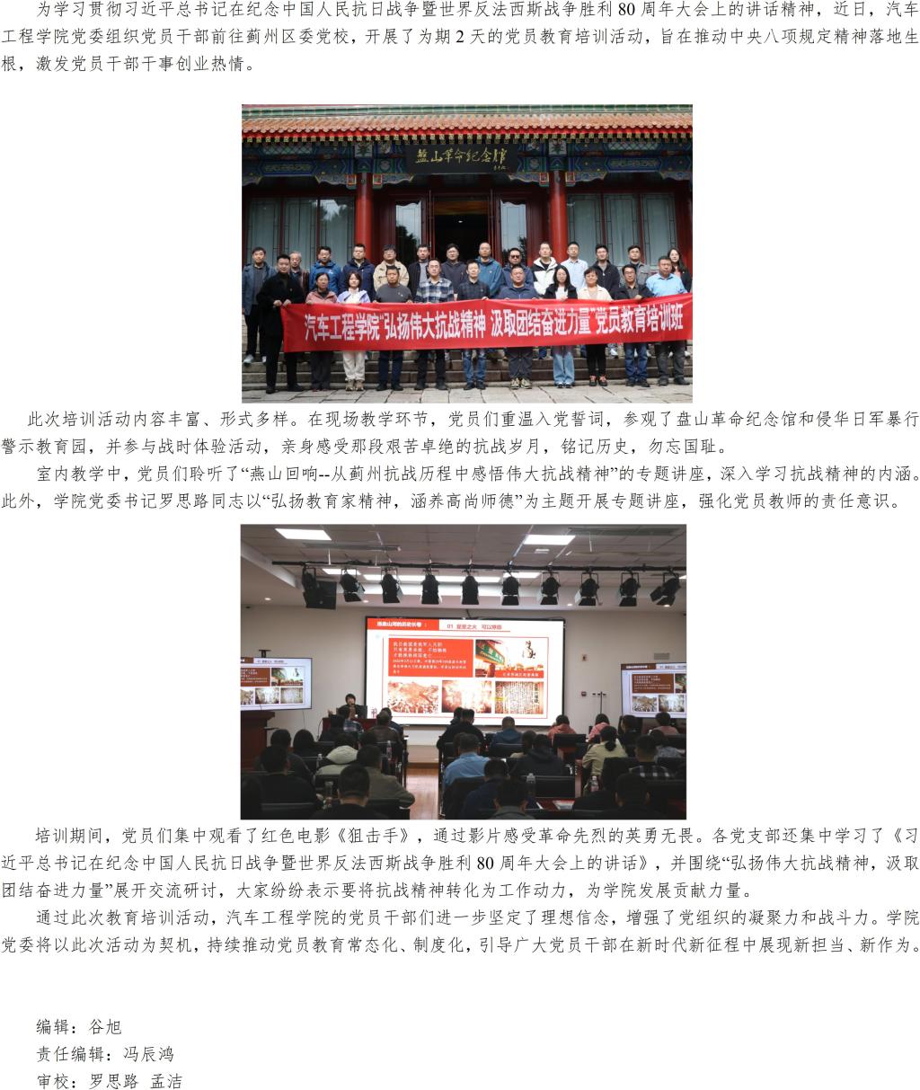 汽车工程学院开展“弘扬伟大抗战精神 汲取团结奋进力量”党员教育培训活动